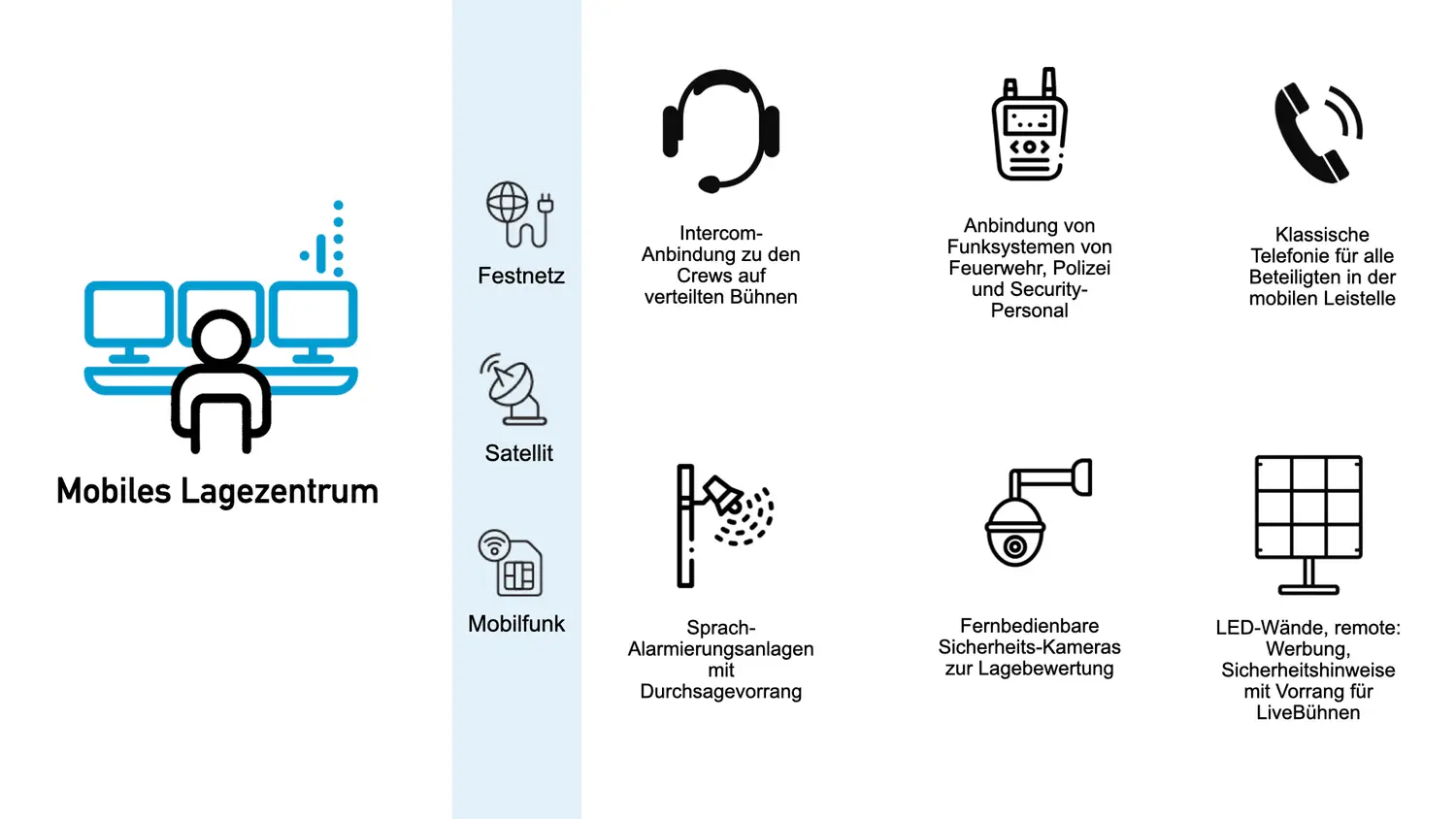 Wir integrieren unsere bewährte Medien-Infrastruktur mit modernster Sicherheitstechnik, um Veranstaltern maximale Kontrolle und ein präzises Lagebild für jedes Event zu garantieren.